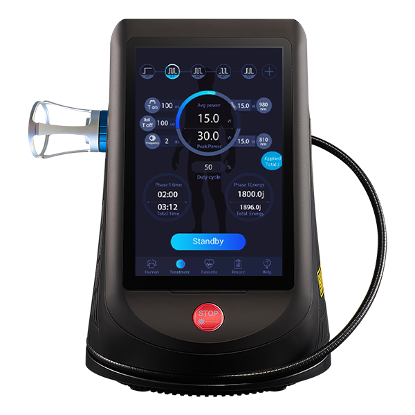 The dual-wave system delivers 30 watts (peak 25w) of total therapeutic output, generated from two independent 15-watt laser diodes.